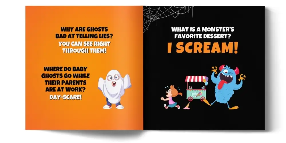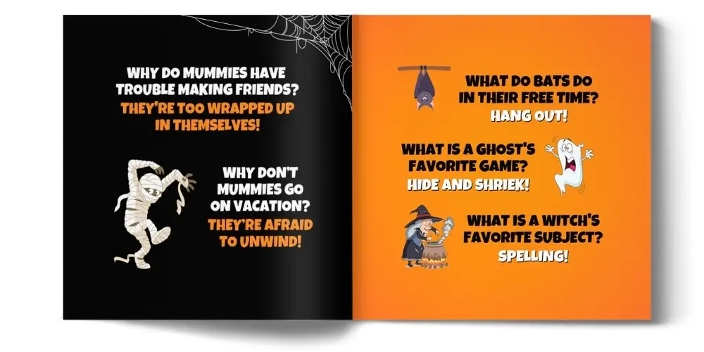 SPOOKY SILLY HALLOWEEN JOKES Available on amazon Why don’t skeletons watch scary movies?They don’t have the guts!Where is the best place to hide from a ghost?The living room! Spooky Silly Halloween Jokes is full of cute Halloween illustrations and silly Halloween humor. It’s also easy-to-read, which makes it a blast for the entire family!